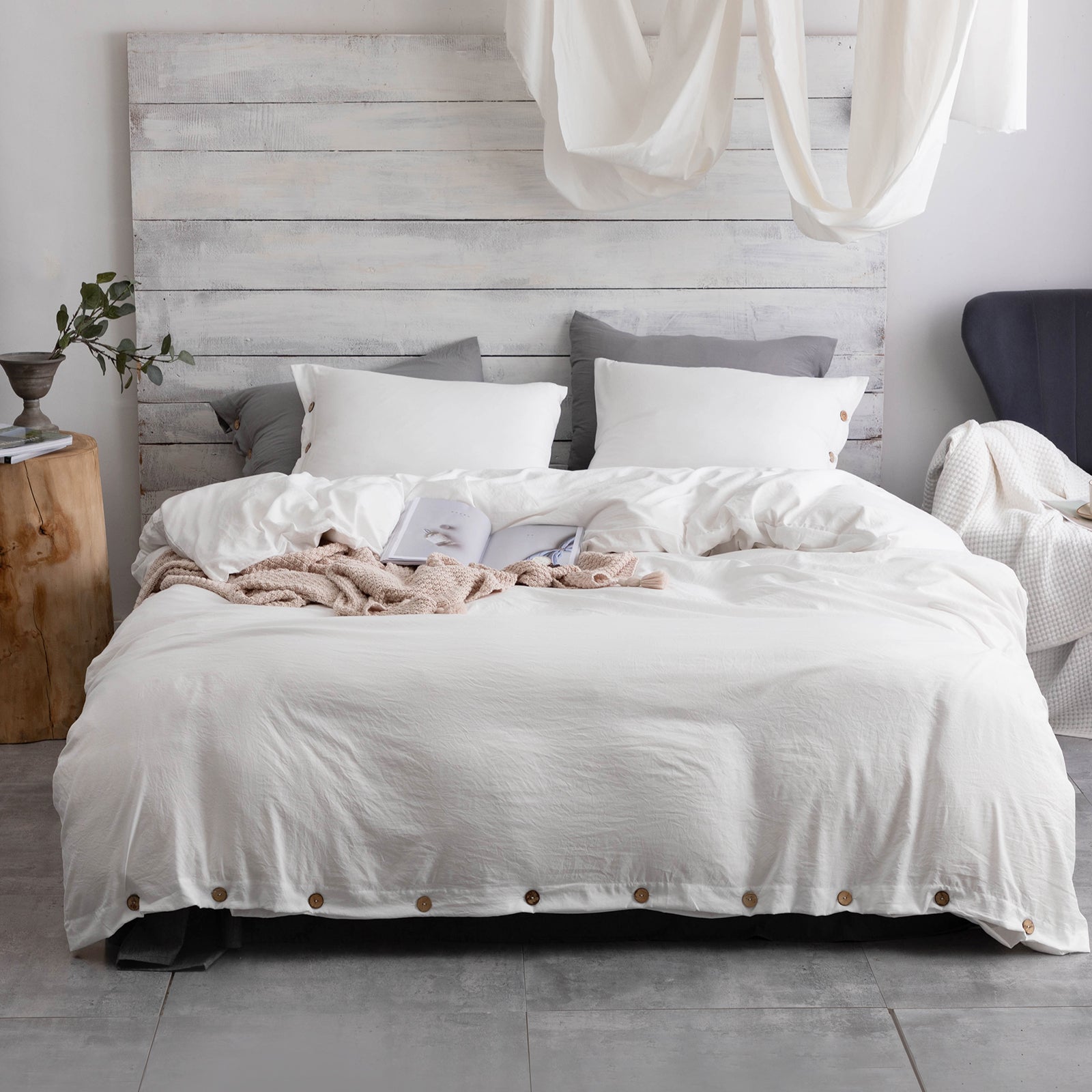 There are many colors of this button closure duvet cover set, like wine, white, yellow, navy blue, denim blue, light grey, dark grey, khaki and light pink. They can be nice decoration ideas and bring your room a modern and chic atmosphere.