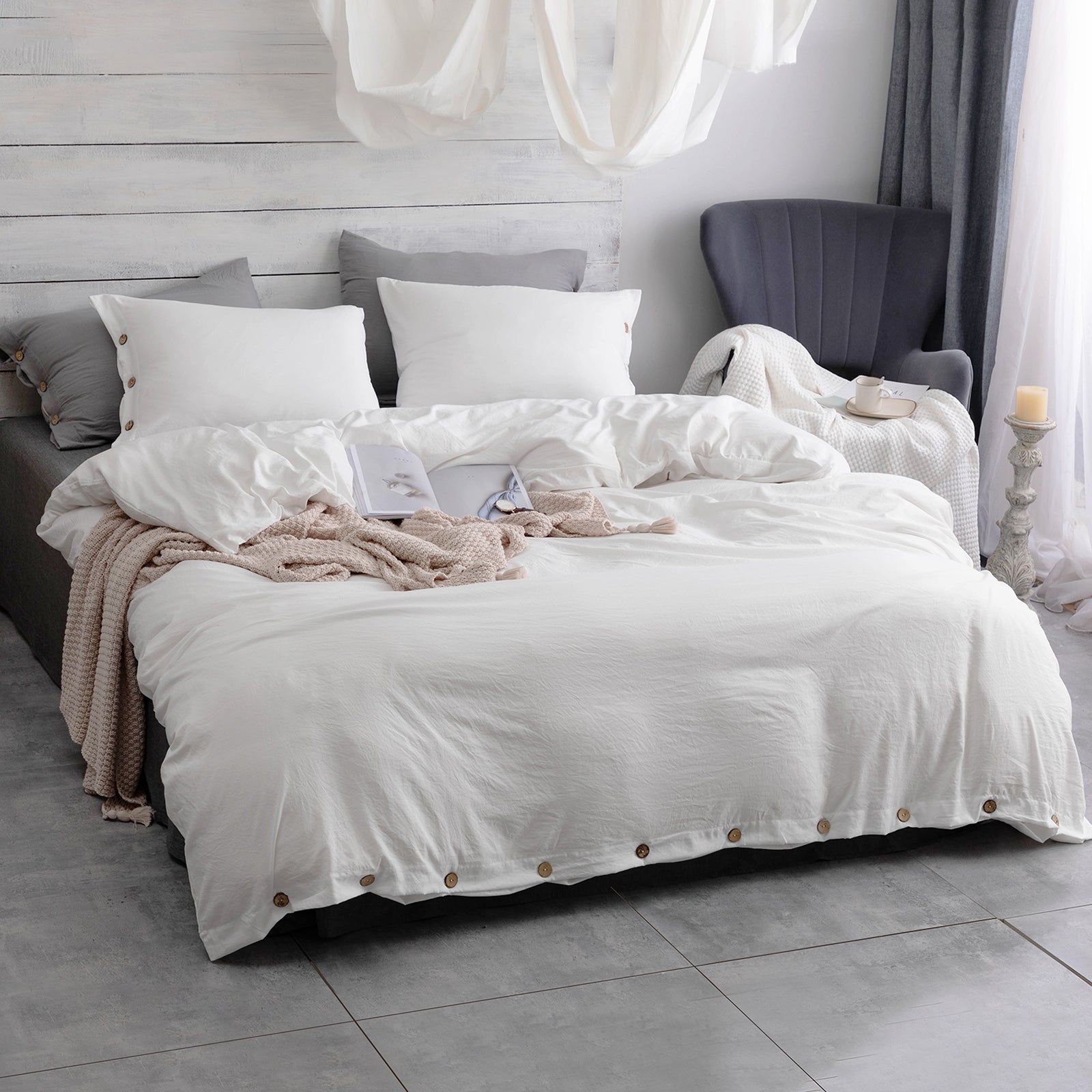 - Decorative And Modern Design: White Decorated Button Duvet Cover, No Rich Color Or Complicated Pattern, Combining Classic Solid Color Fabric With Cute Button Closure, Adding a Spot To Your Bedroom And Letting You Enjoy The Simple And Modern Life.
