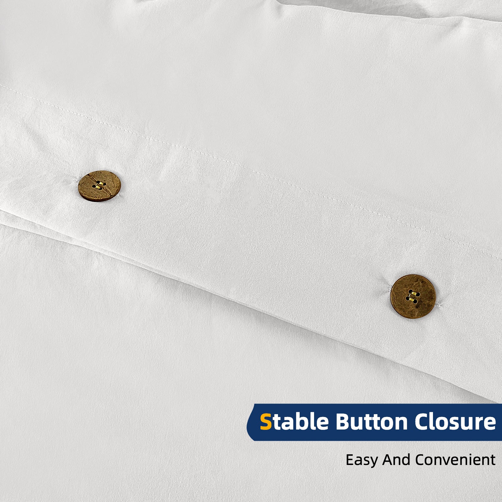 - Button Closure & Conner Ties & Pillow Sham: Coconut Buttons Are Easy To Close Comforter Cover. Every Corner Has a Pair Of Ties To Keep The Duvet Fixed In Place. Cute Button Pillow Case Is Convenient To Put Pillow In And Out.