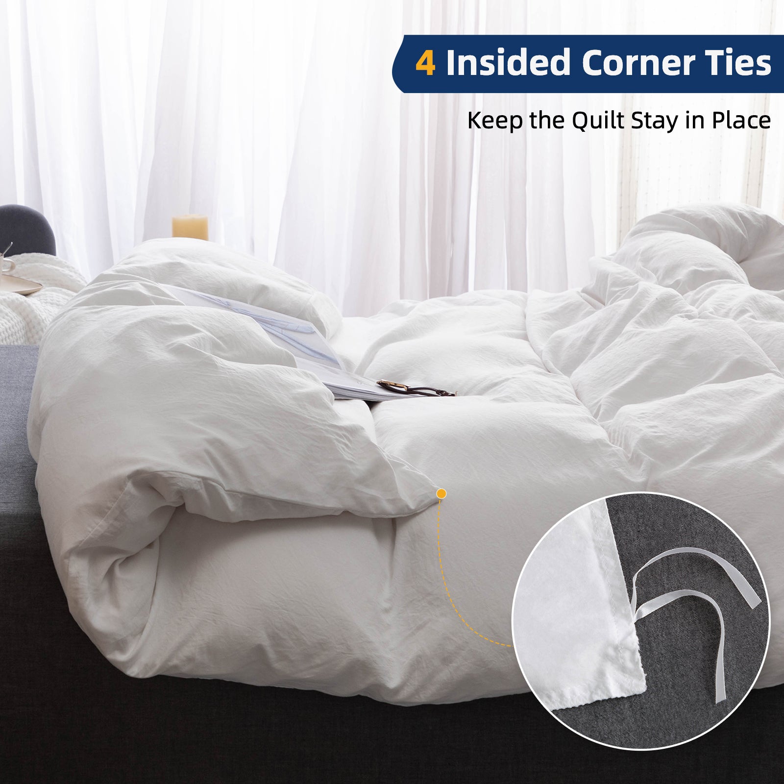 4 inside corner ties, keep quilt insert stay in place.