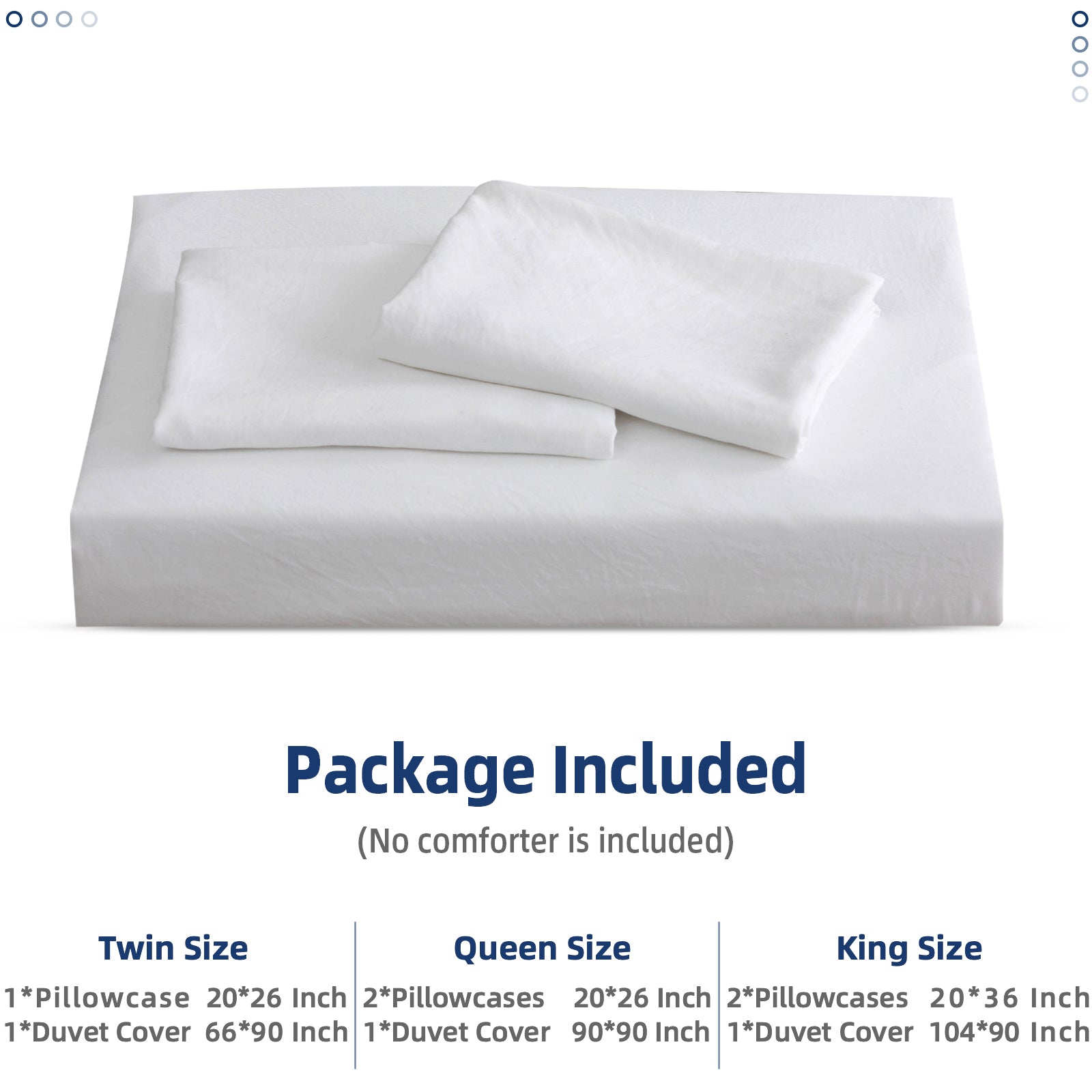 - Queen Size: 2*Pillowcases 20''X26'', 1*Duvet Cover 90''X90''